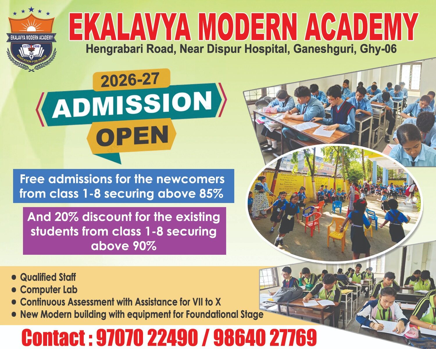 The School was established in 1998 on 1st January . Only meager number of students were admitted in the first year for preparatory in a two small size classrooms. In 2003 the school was shifted to the present building. The Present school building is located at Hengrabari Road, Ganeshguri, Guwahati – 06